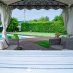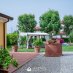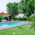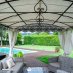 Swimming pool with lounging area and gazebo for dinners with friends.